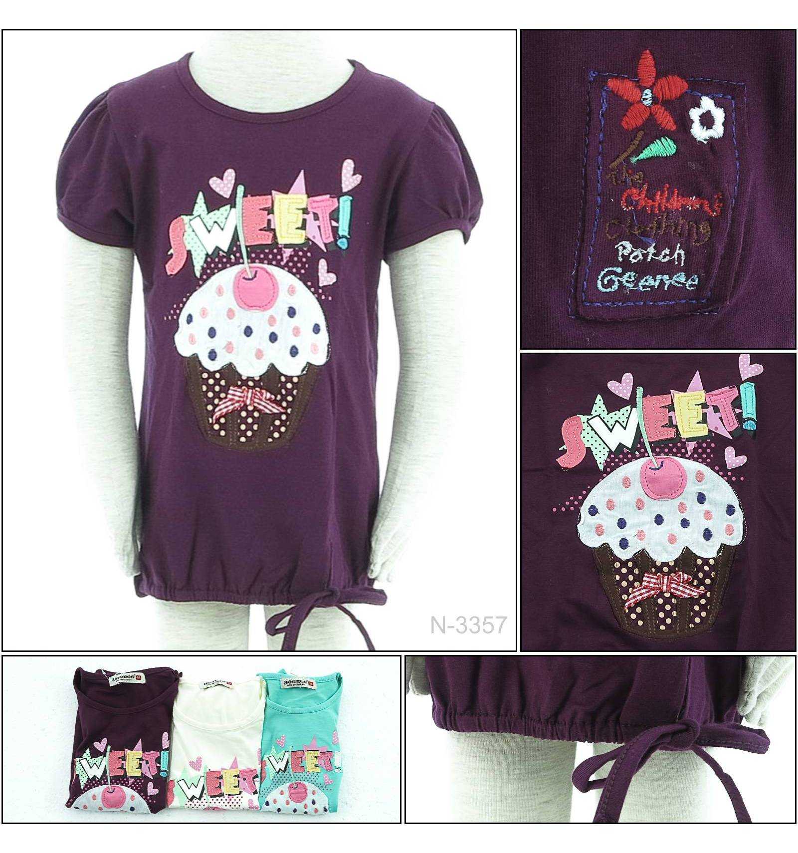 T-shirt/Kaos Oblong Anak Cewek Lengan Pendek Geenee 1-3