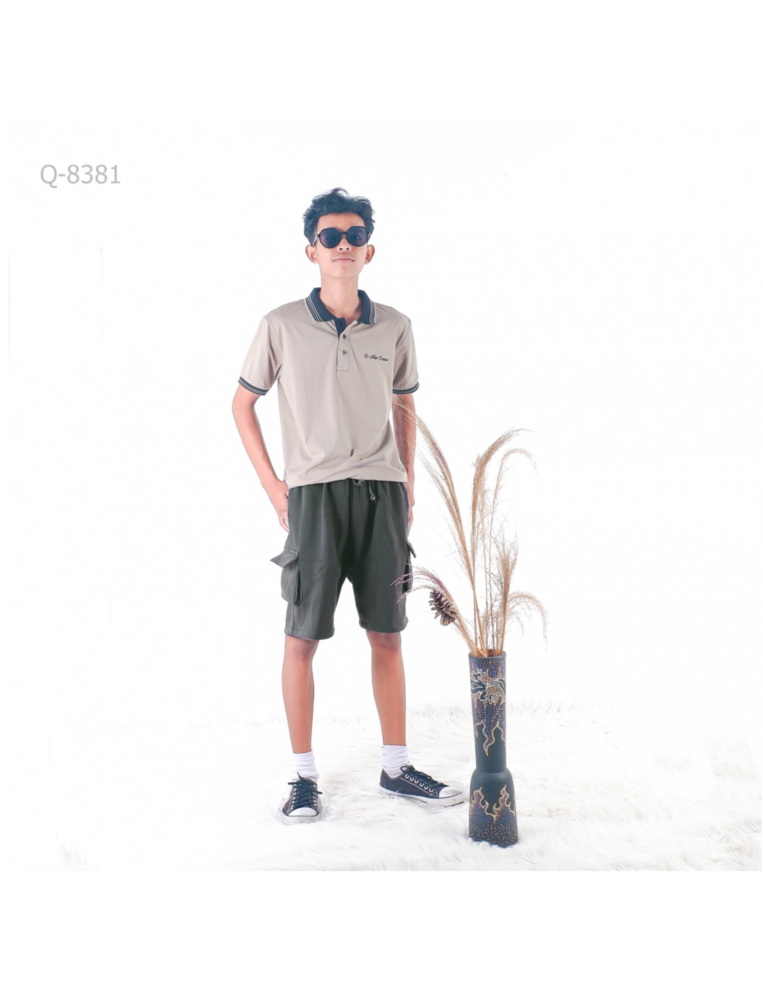 Celana Pendek Kolor Model Cargo Cowok Abu-Abu Arvada M-XL