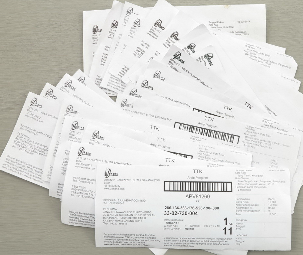 Kumpulan Resi dari pengiriman melalui Pos Indonesia