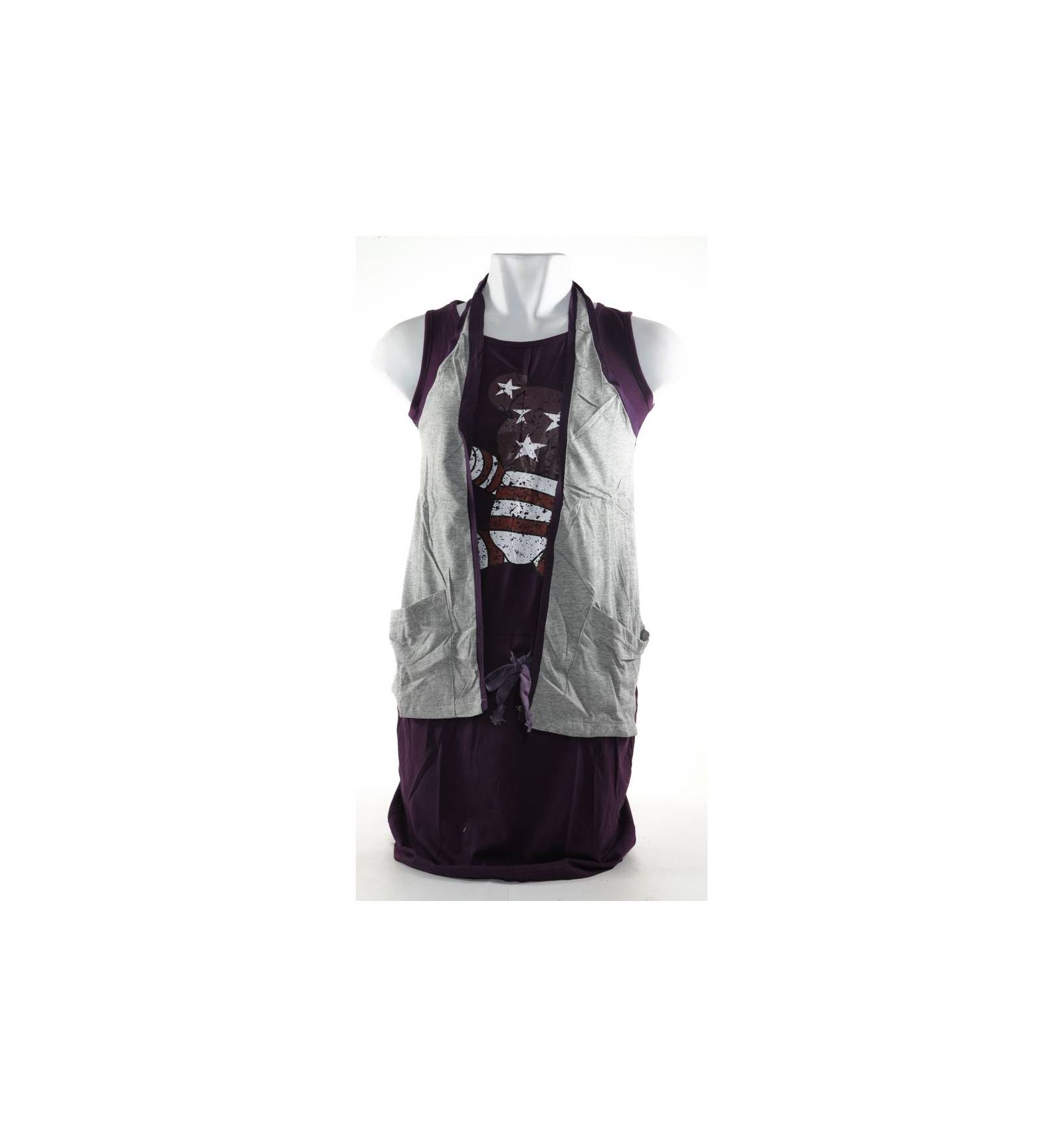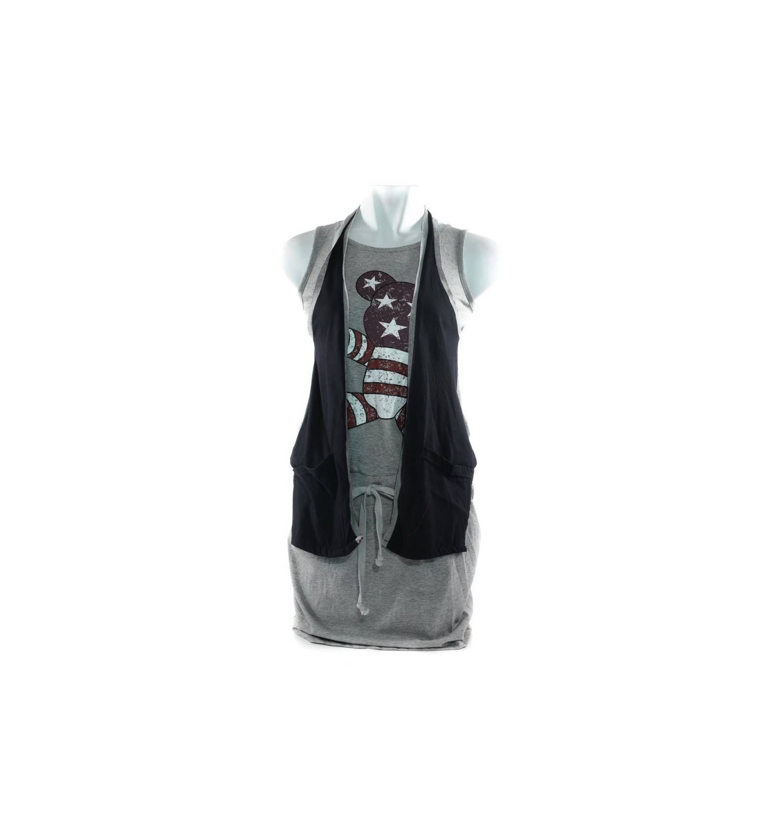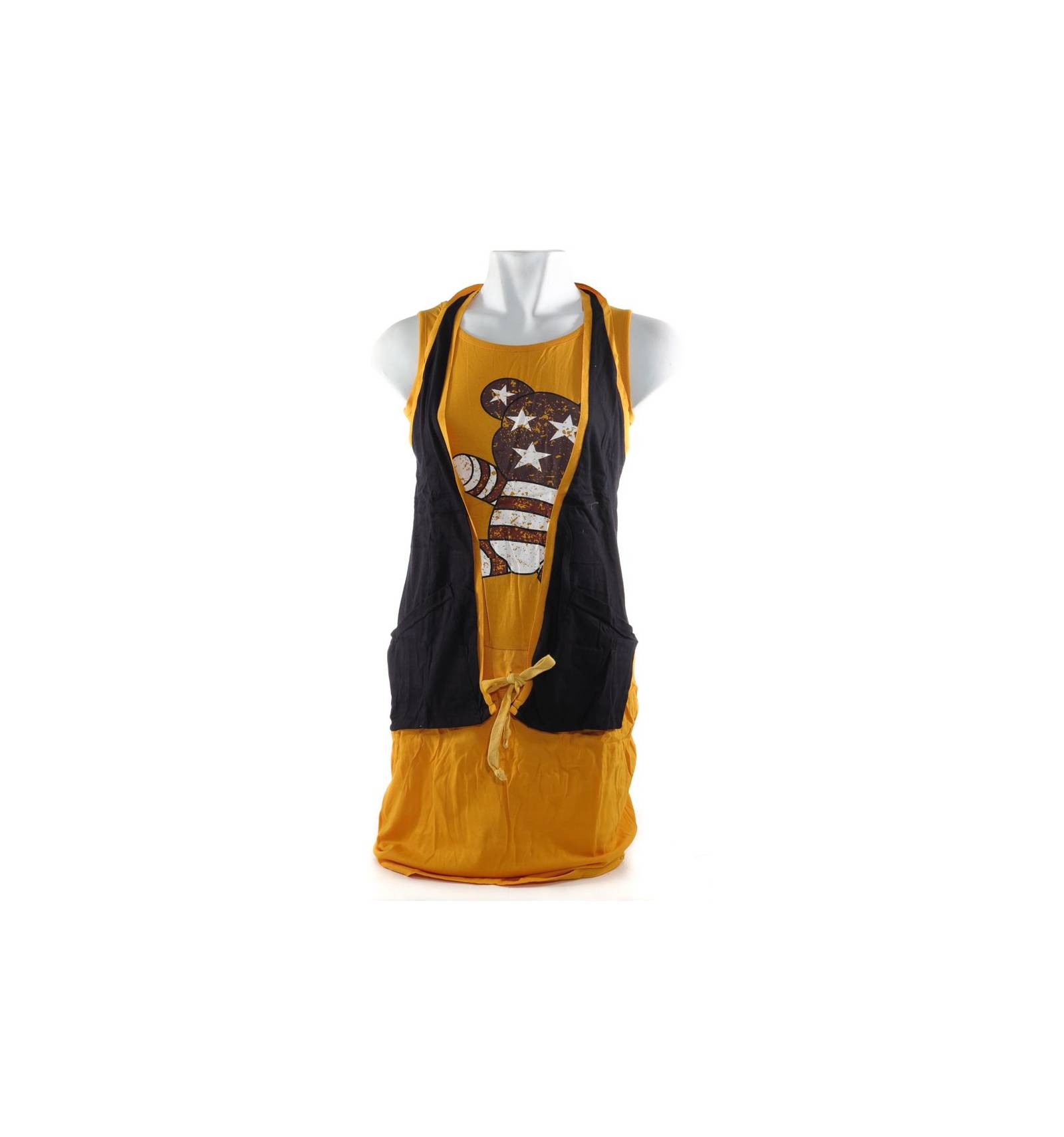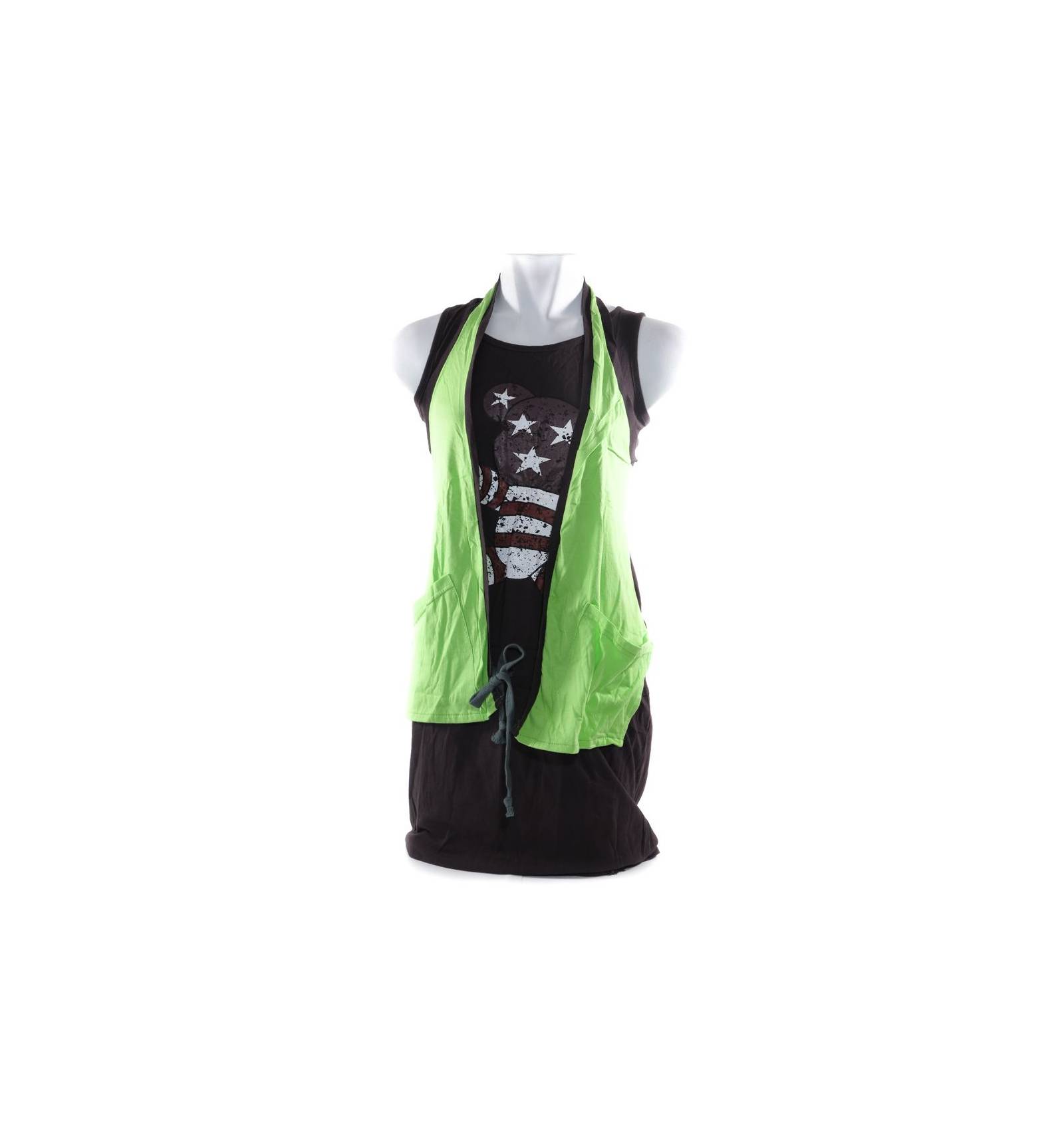 Bagian leher menggunakan kerah O-neck.Bahannya adem,dapat menyerap keringat,warna tidak luntur,dan tebal.Hiasan berasal dari sablon.Menggunakan tali di pinggul sebagai pengait.Sebel